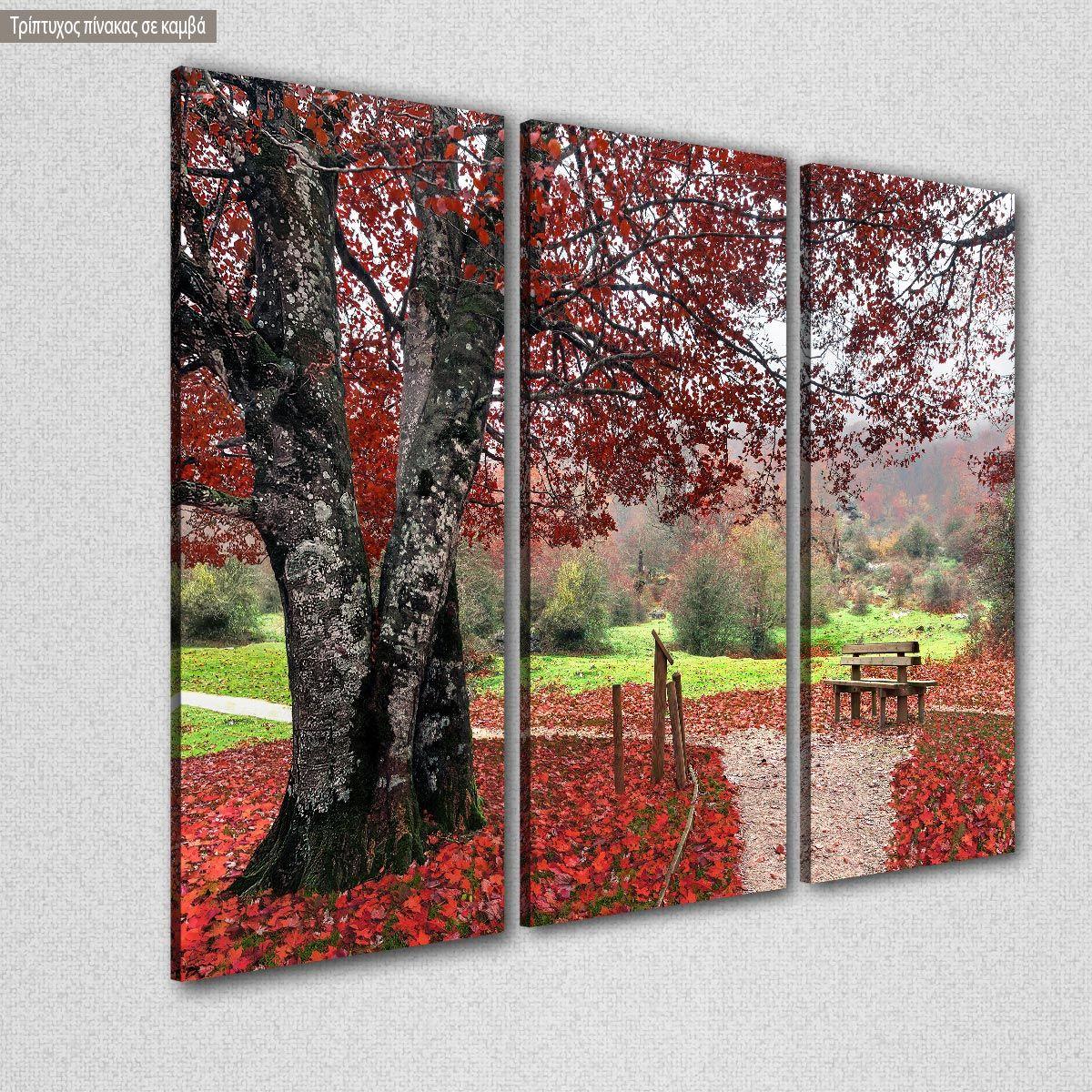 Πίνακας σε καμβά Red leaves, τρίπτυχος