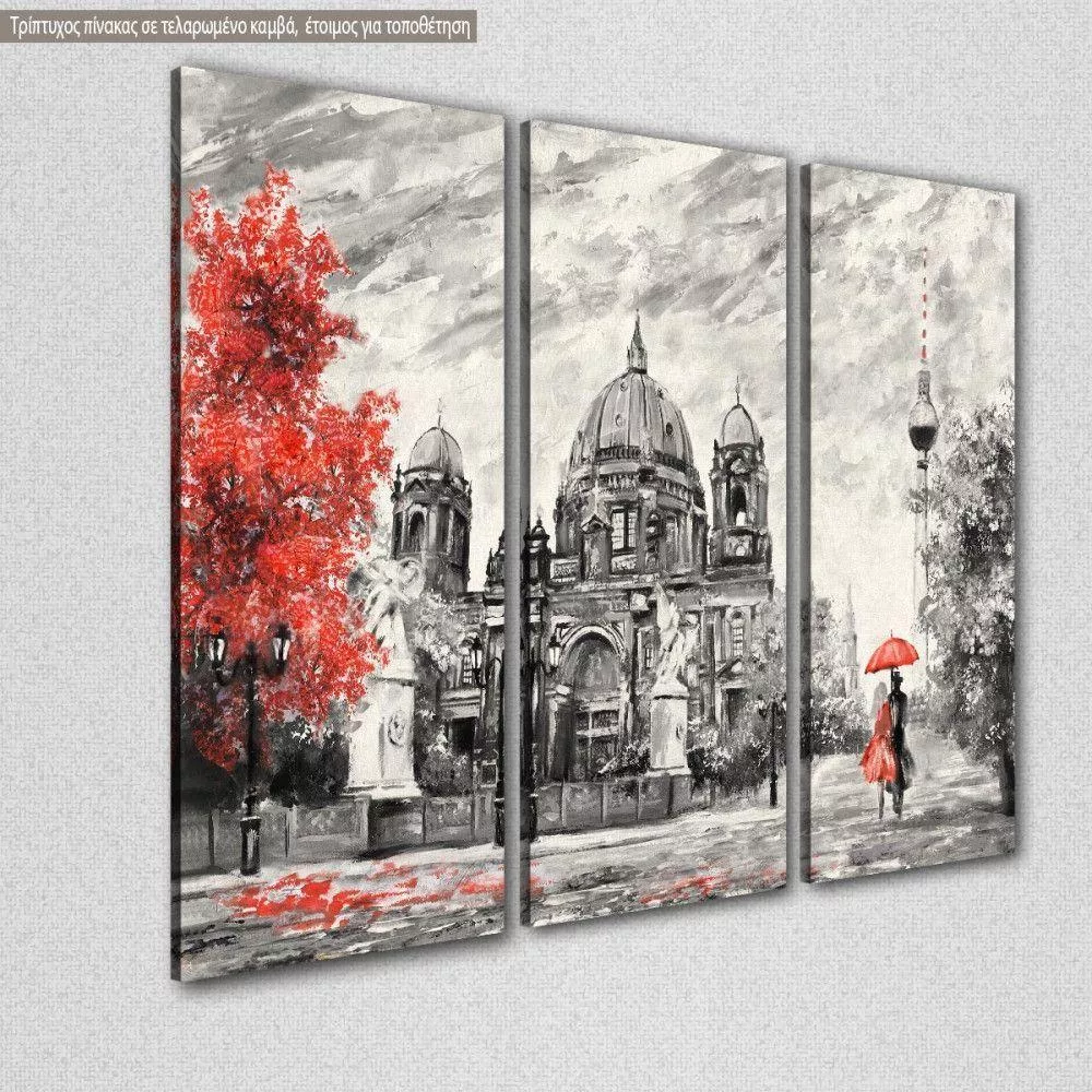 Πίνακας σε καμβά Βερολίνο, Street view of Berlin, red and grayscale, τρίπτυχος