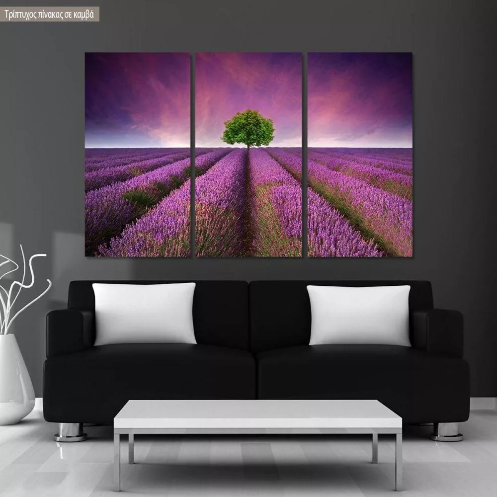 Πίνακας σε καμβά Stunning lavender field, τρίπτυχος