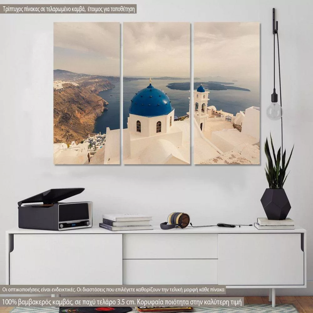 Πίνακας σε καμβά Σαντορίνη, Stunning view of churches, Santorini, τρίπτυχος