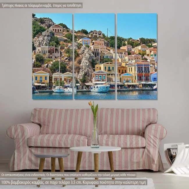 Πίνακας σε καμβά Σύμη, Symi island houses. τρίπτυχος