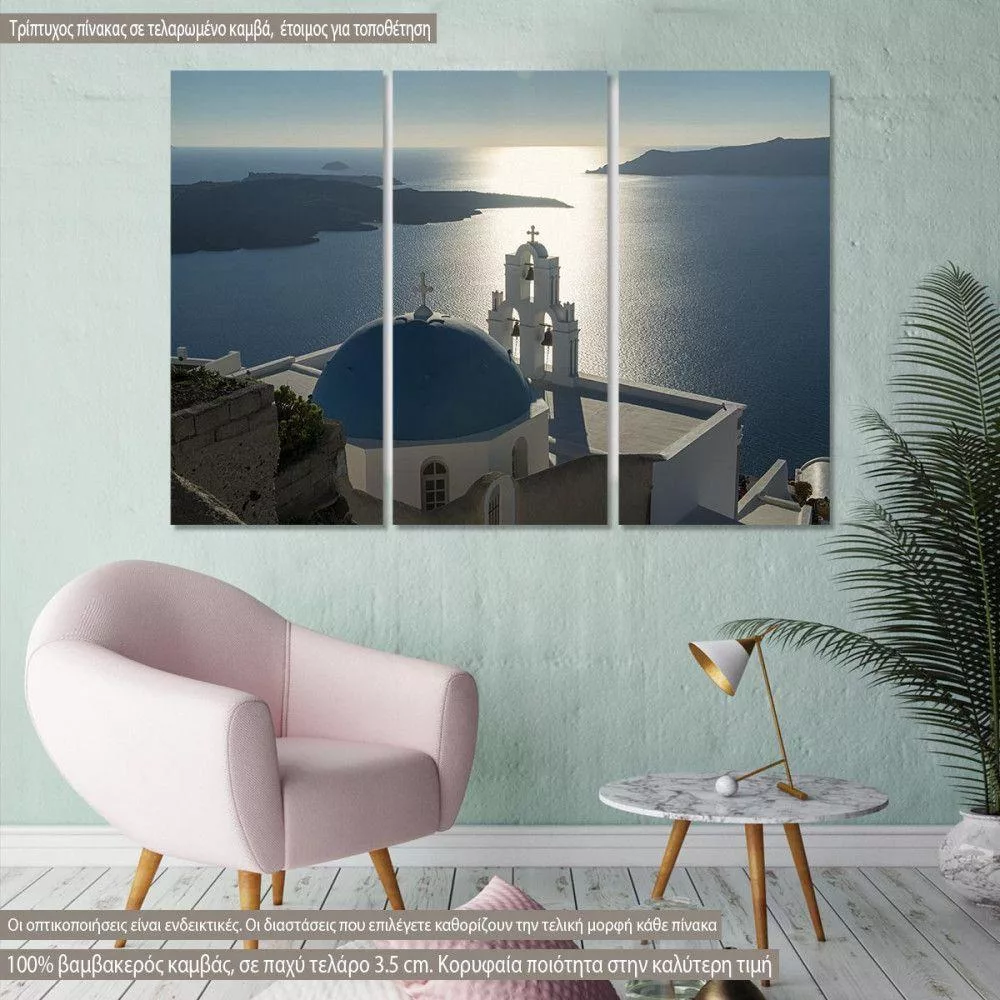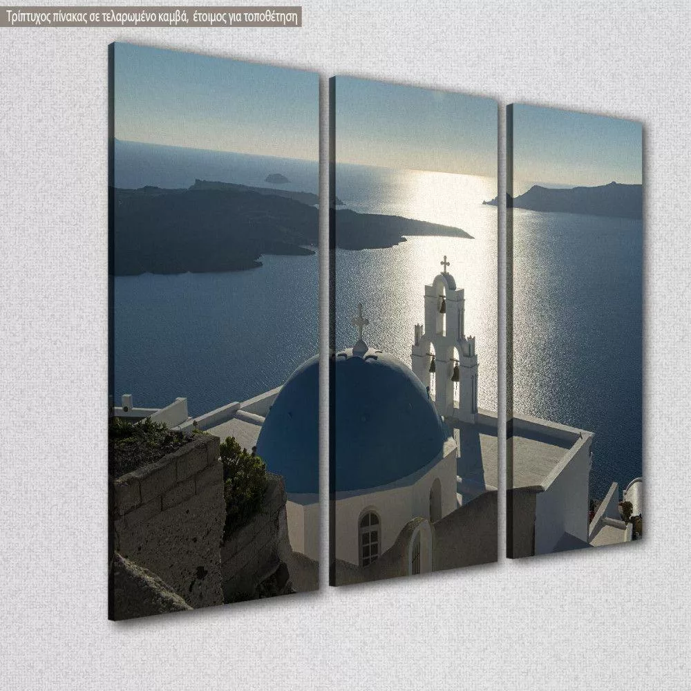 Πίνακας σε καμβά Σαντορίνη, Three bells of Thera, Santorini, τρίπτυχος