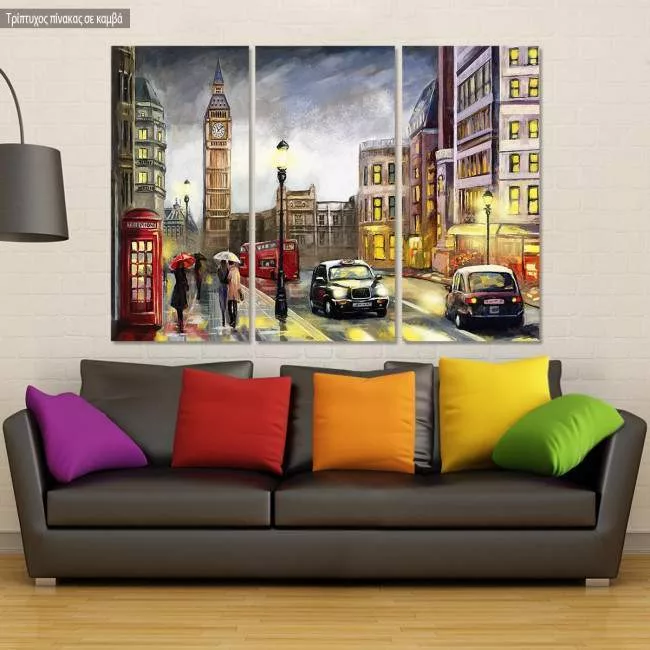 Πίνακας σε καμβά Λονδίνο, Vintage street view of London, τρίπτυχος