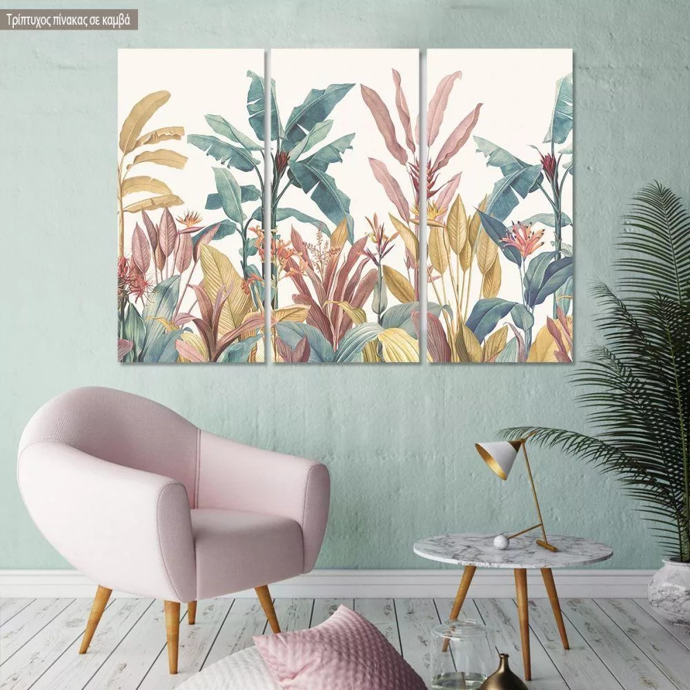 Πίνακας σε καμβά Vintage tropical scene, τρίπτυχος