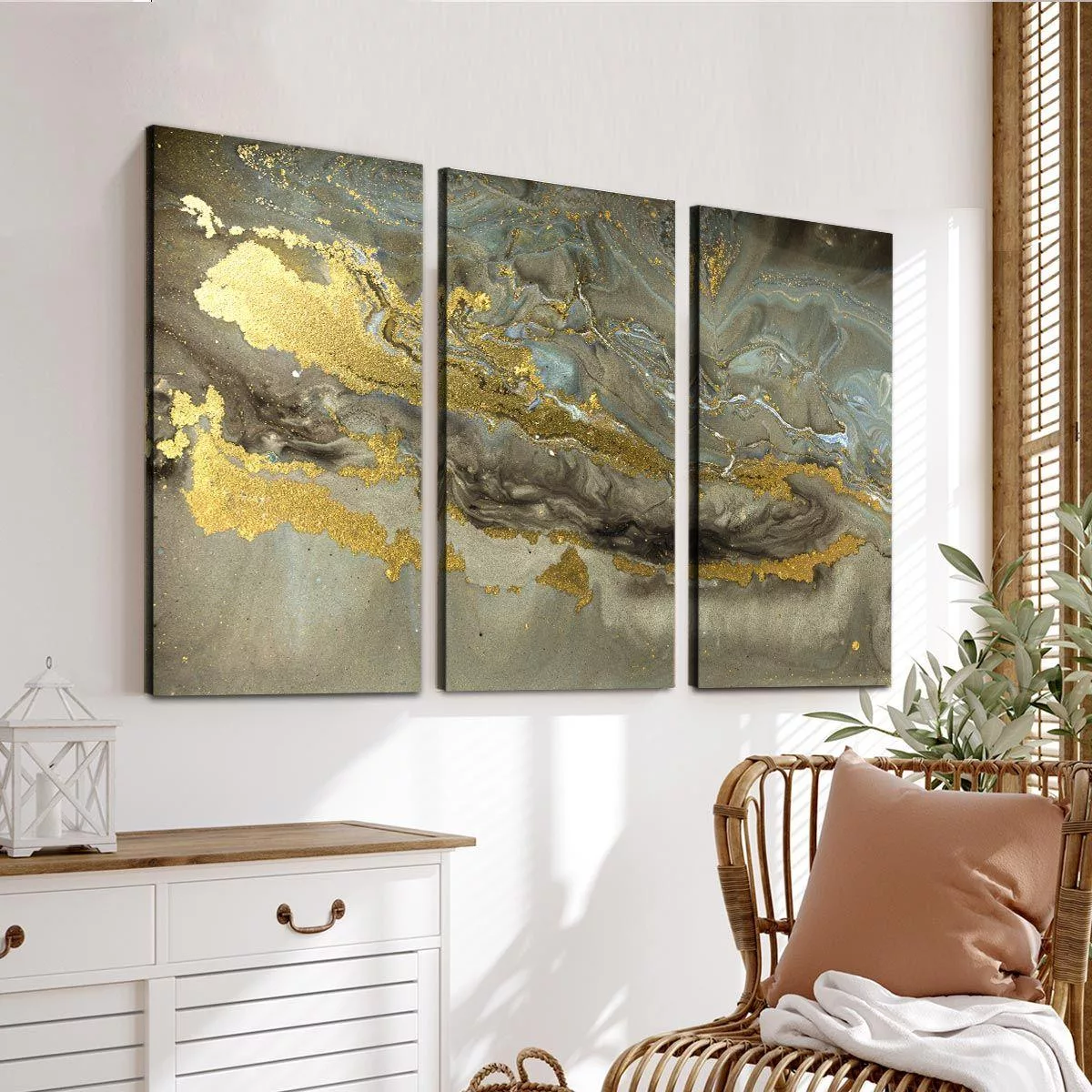 Πίνακας σε καμβά Gold marble texture, τρίπτυχος