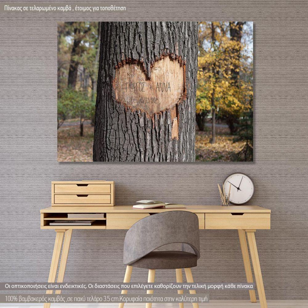 Πίνακας σε καμβά Καρδιά στο δέντρο, Heart on tree (με όνομα)