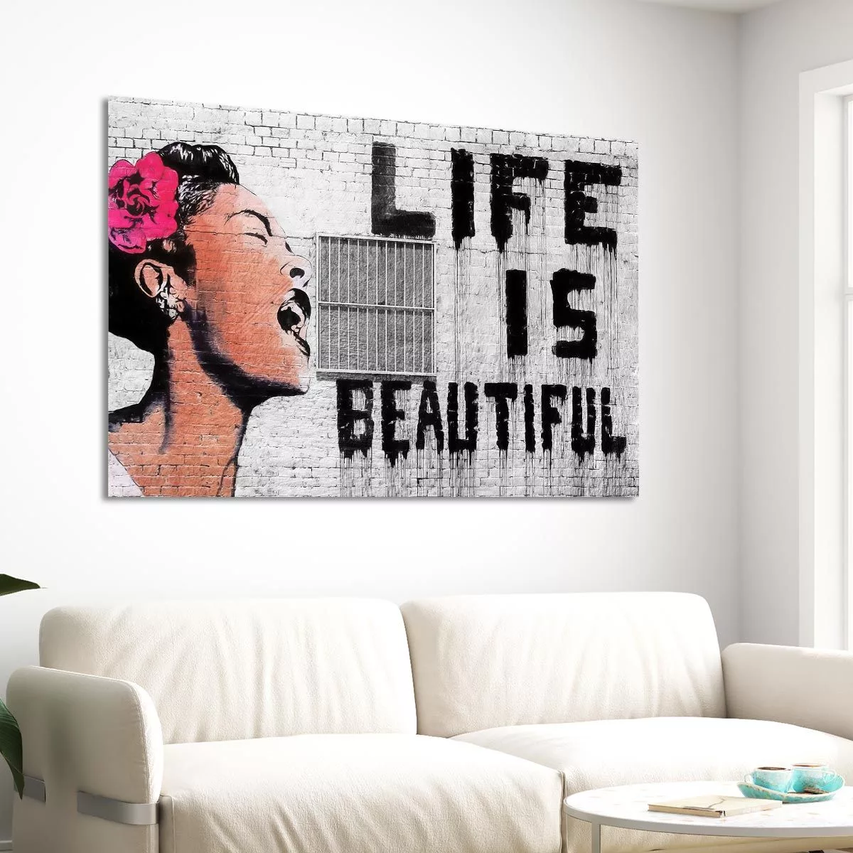 Πίνακας σε καμβά Billie holiday life is beautiful, Banksy