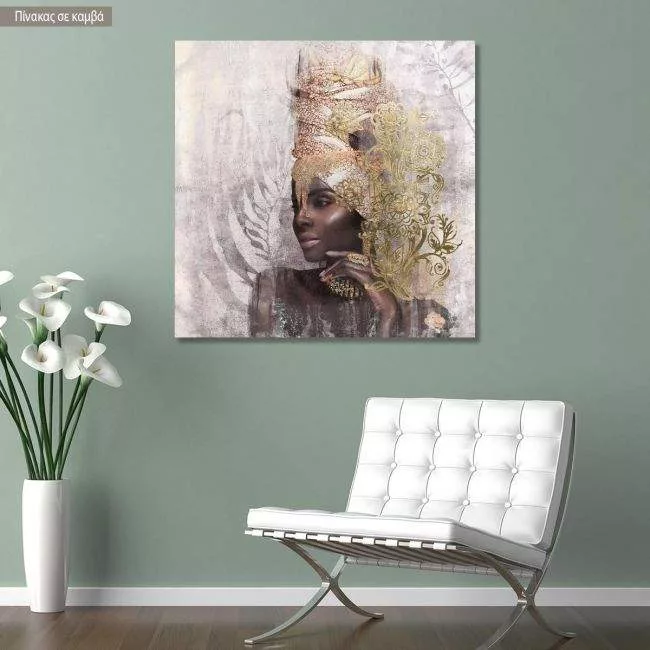 Πίνακας σε καμβά Black lady, golden details