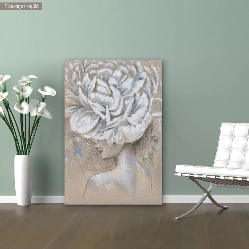 Πίνακας σε καμβά, Flowered woman coal drawing I
