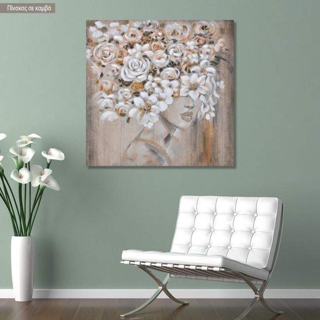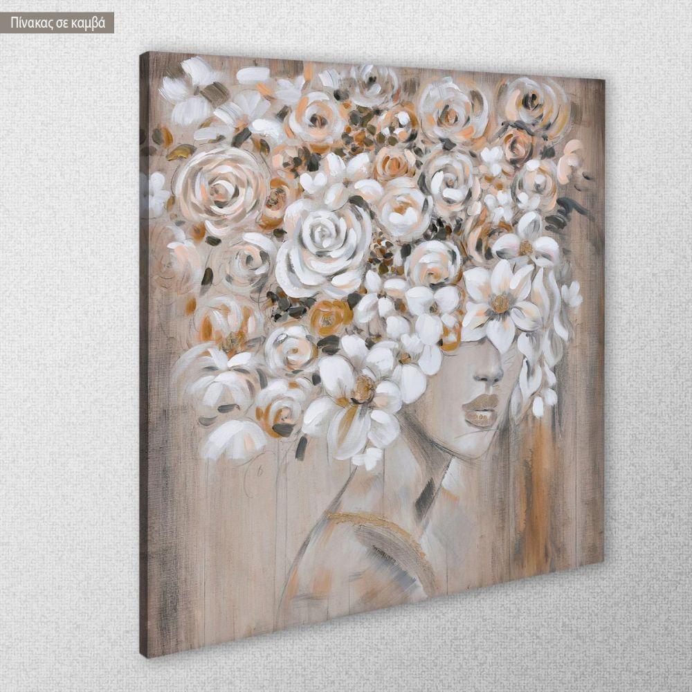 Πίνακας σε καμβά Flowered woman on brown, τετράγωνος