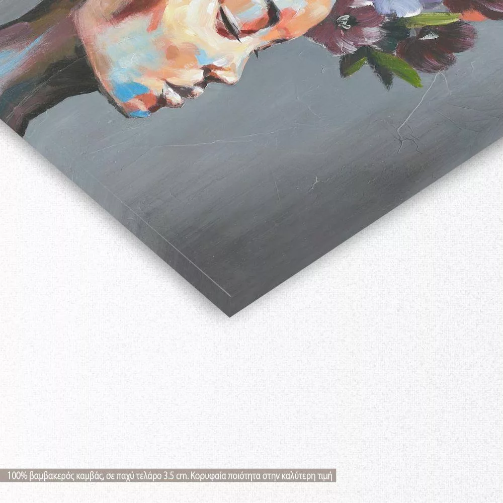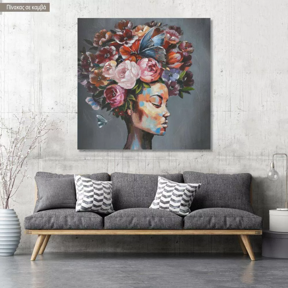 Πίνακας σε καμβά Flowered woman on gray, τετράγωνος