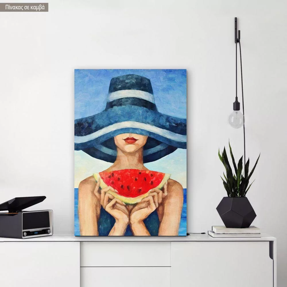 Πίνακας σε καμβά Hat and watermelon, κάθετος