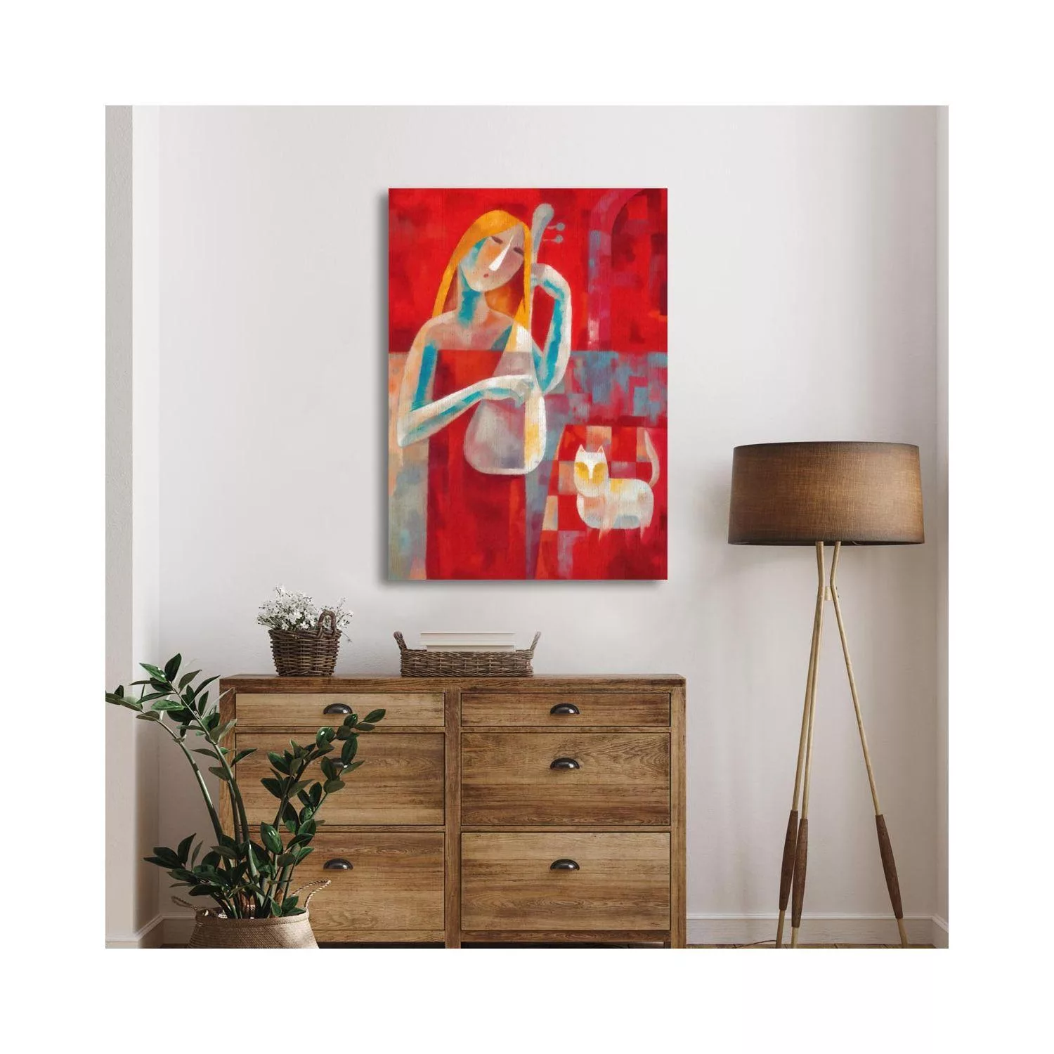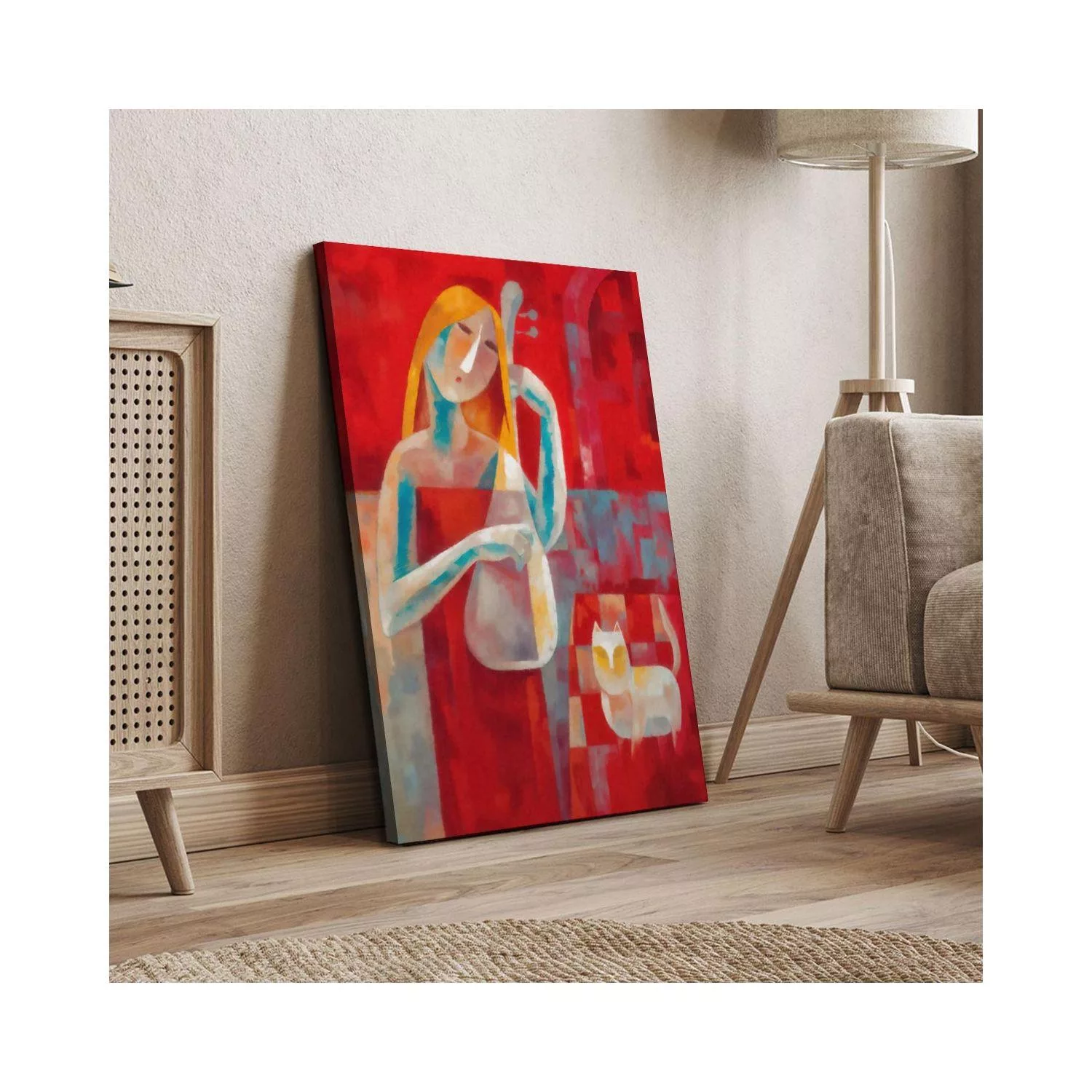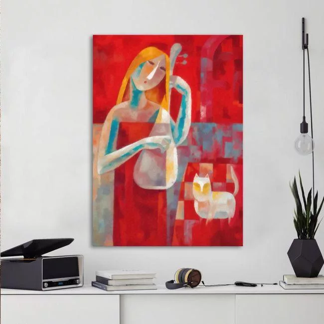 Πίνακας σε καμβά Music and cat