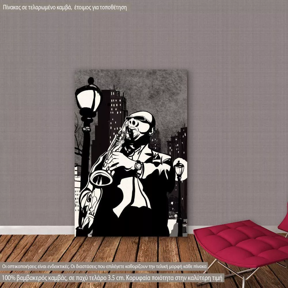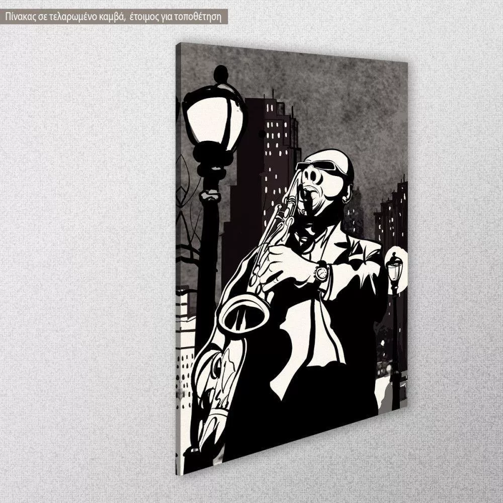 Πίνακας σε καμβά Μουσική, Saxophone player in a street at night