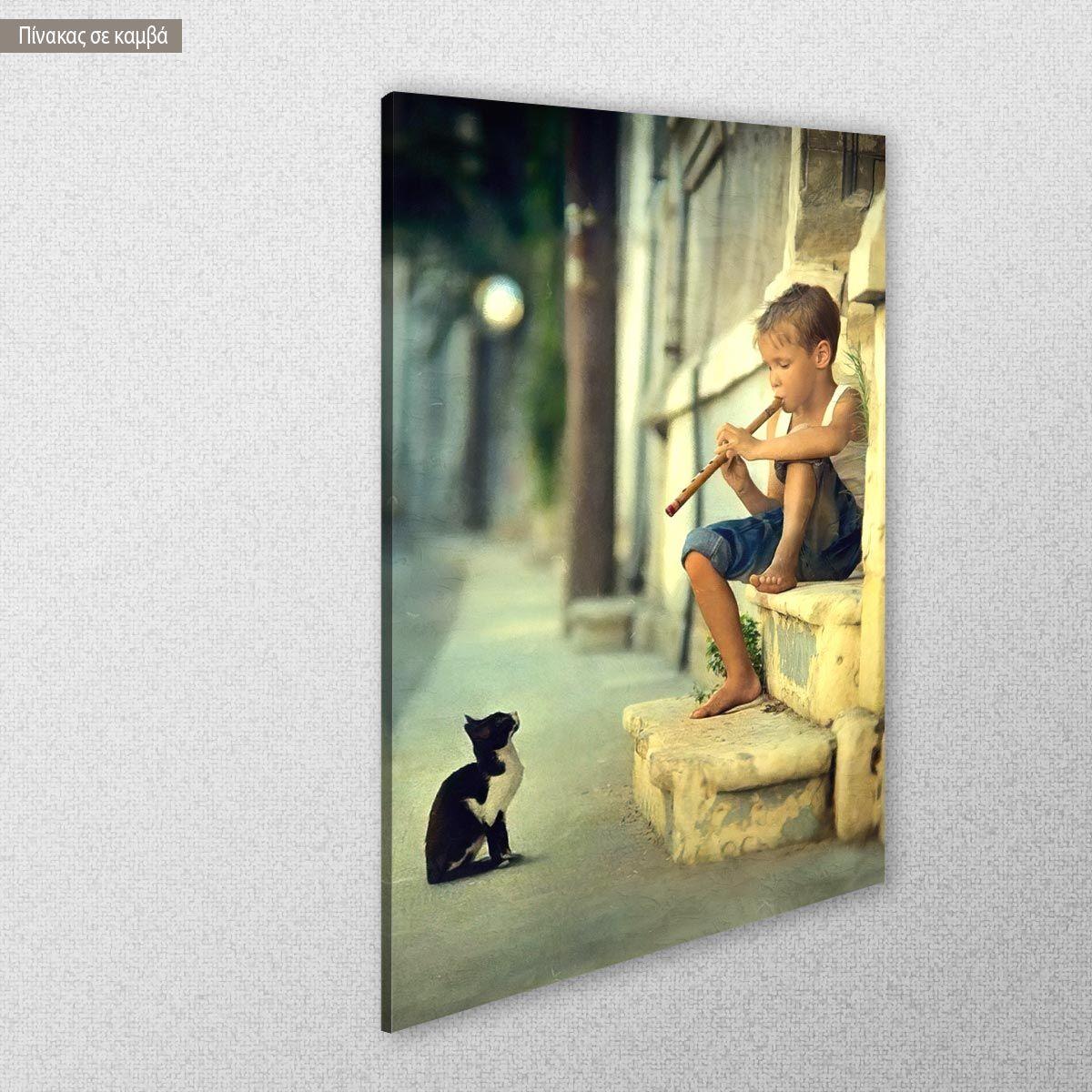 Πίνακας σε καμβά The piper and the cat, κάθετος