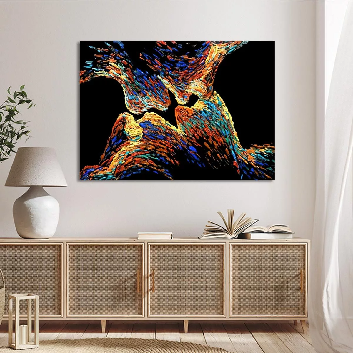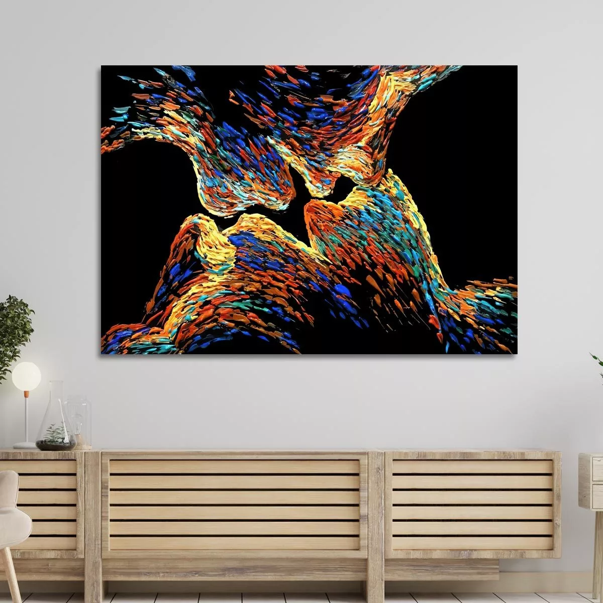 Πίνακας ζωγραφικής Colorful kiss in black