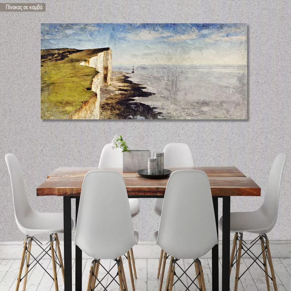 Πίνακας σε καμβά Φάρος στα αγγλικά παράλια impasto, πανοραμικός