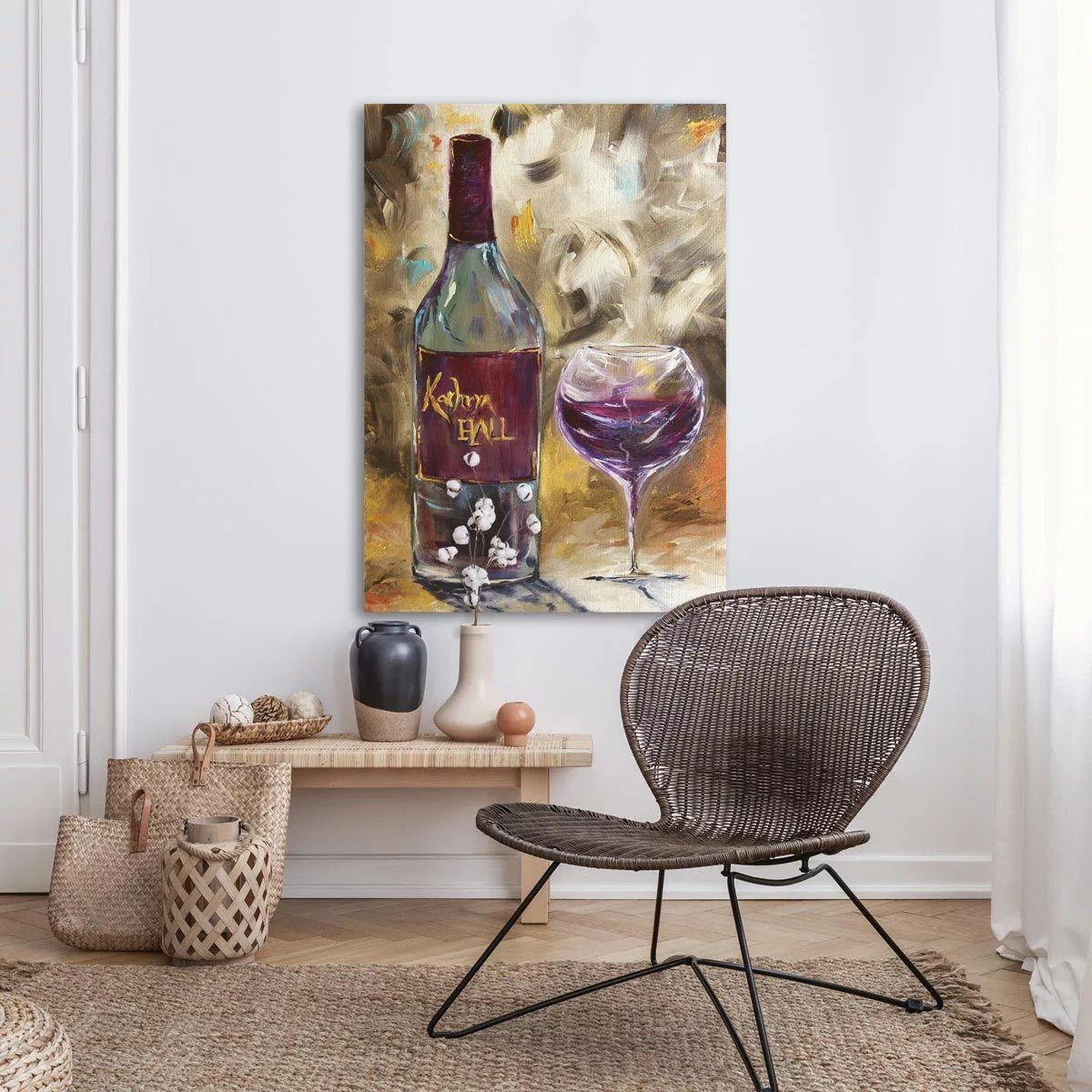 Πίνακας σε καμβά Wine bottle with glass