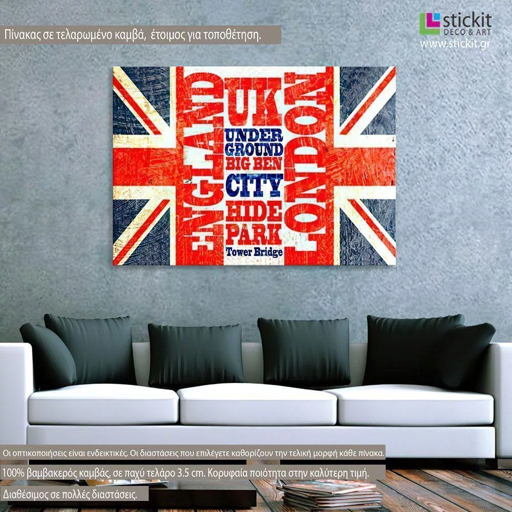 Πίνακας σε καμβά Αγγλική σημαία τυπογραφία
