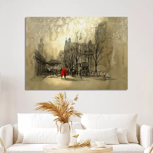 Πίνακας σε καμβά Couple in red