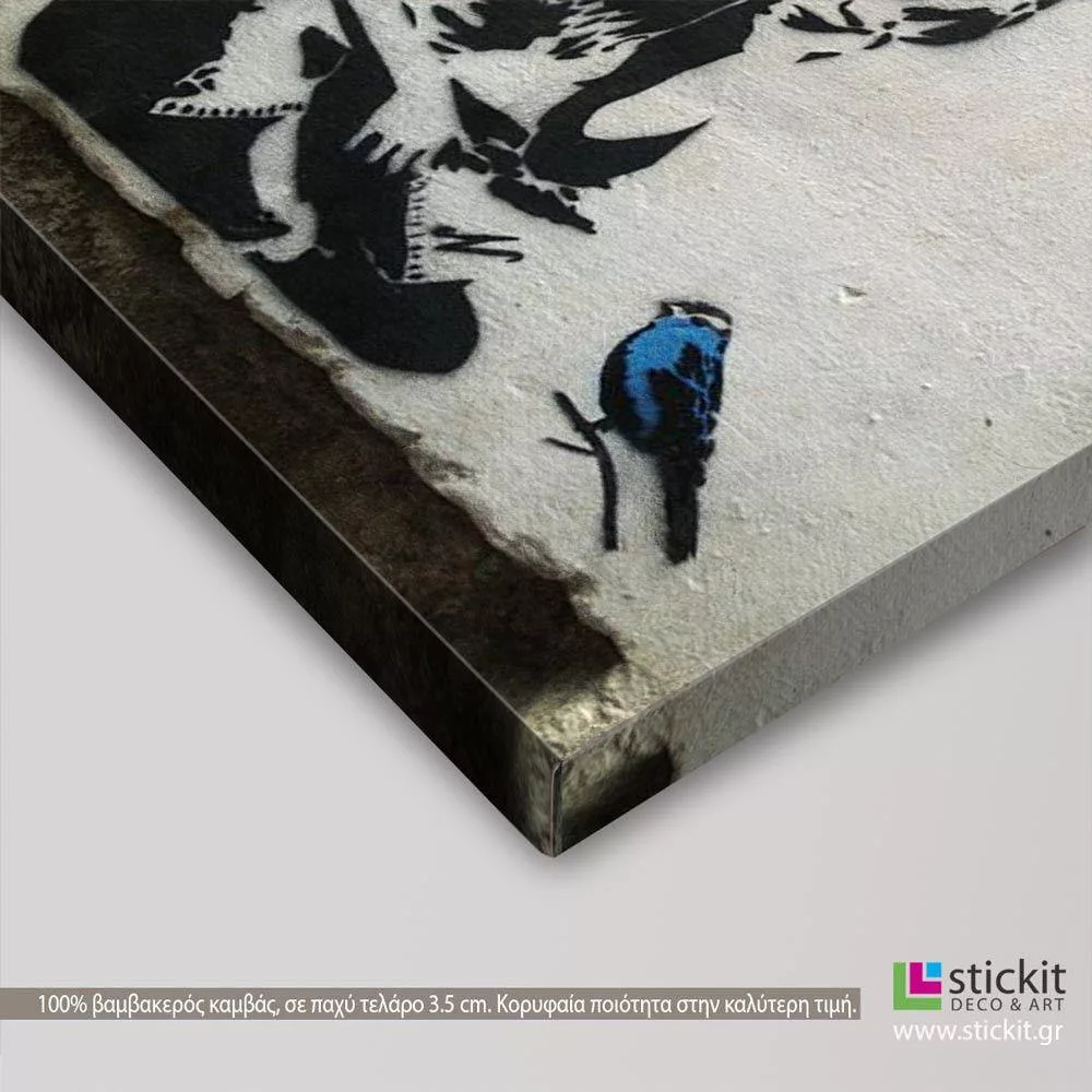 Πίνακας σε καμβά Girl with blue bird, street art