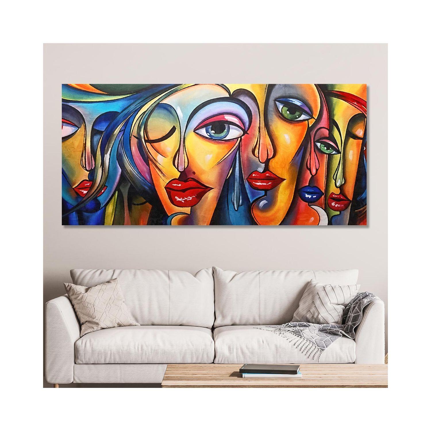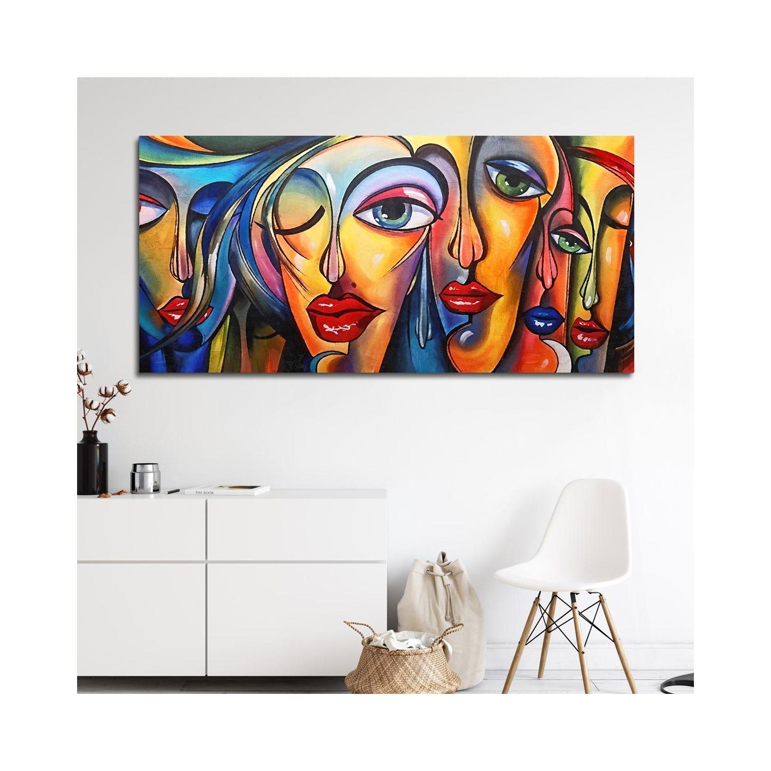 Πίνακας σε καμβά Surrealistic woman faces, πανοραμικός