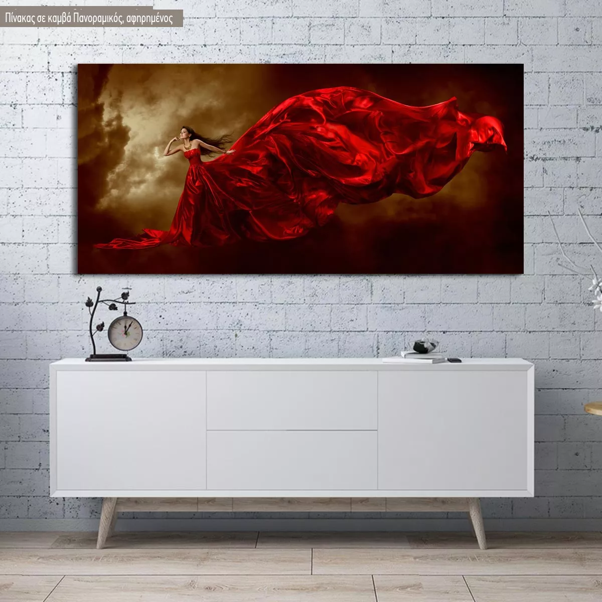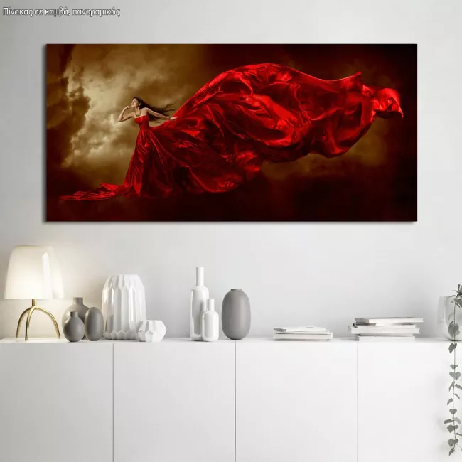 Πίνακας σε καμβά Woman in red dress, πανοραμικός