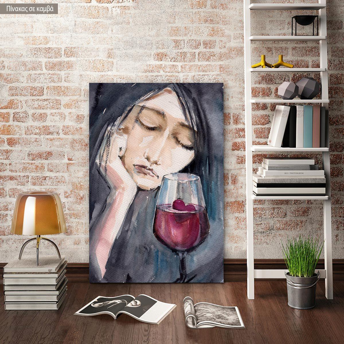 Πίνακας σε καμβά Sad woman with small red heart