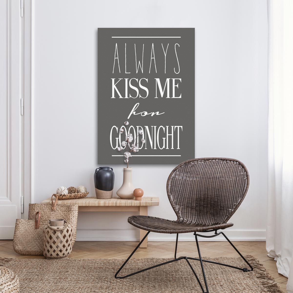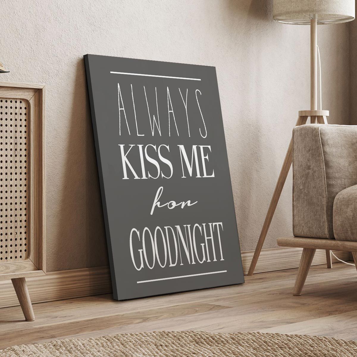 Πίνακας σε καμβά Always kiss me for goodnight Γκρι