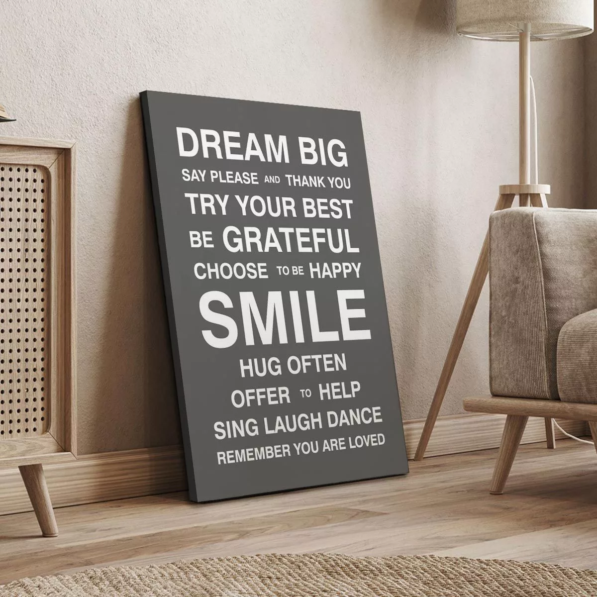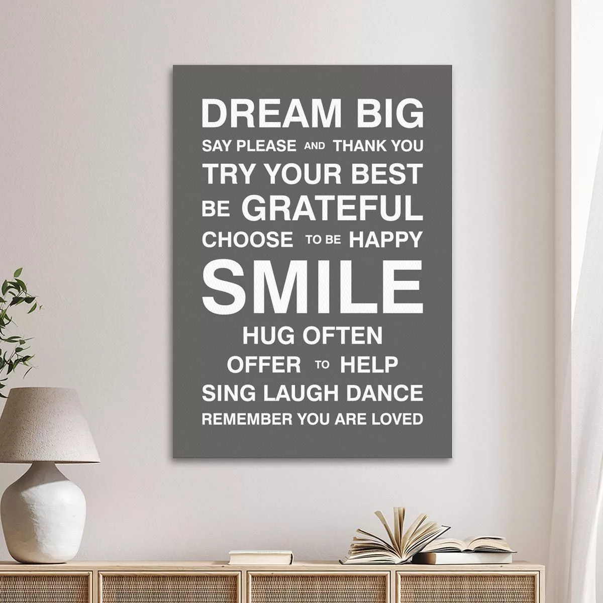 Πίνακας σε καμβά Dream Big, house rules Γκρι Καφε