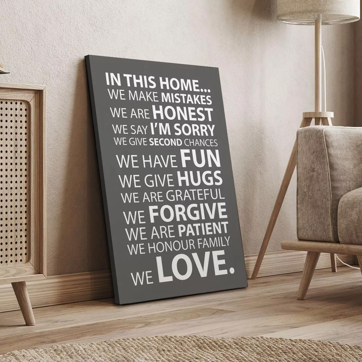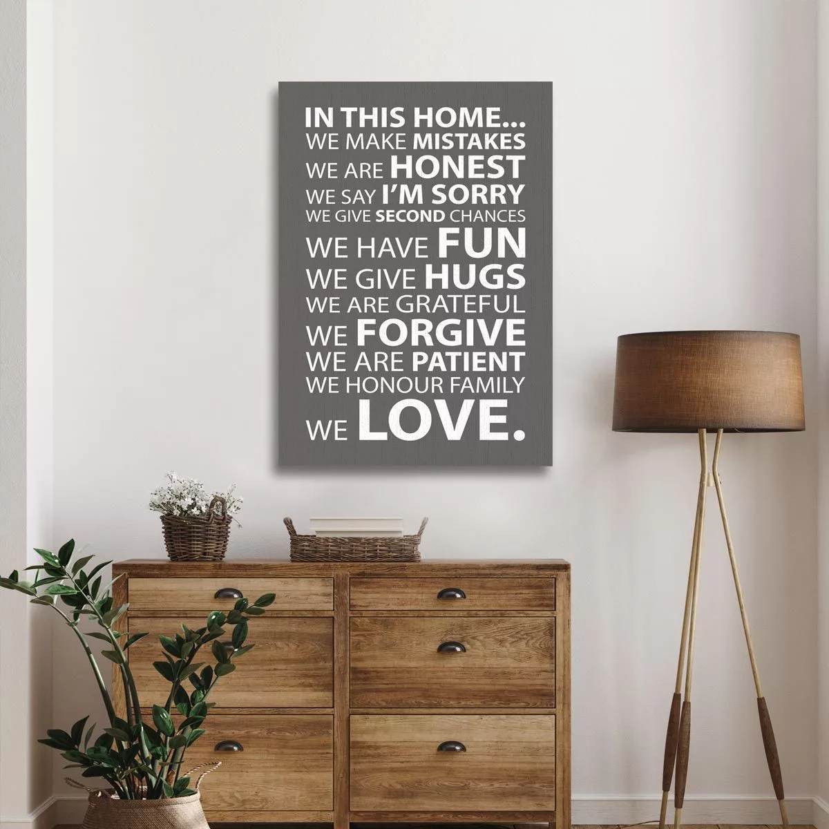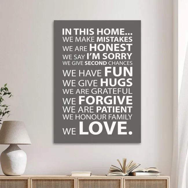 Πίνακας σε καμβά In this home, house rules Γκρι καφε