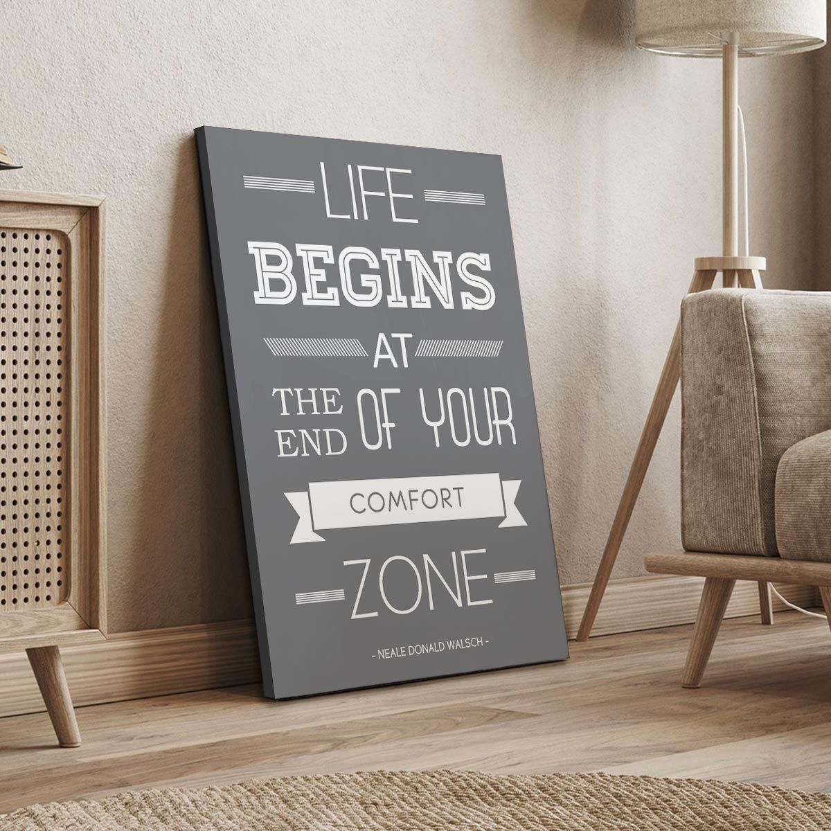Πίνακας σε καμβά Life begins at the end of your comfort zone Γκρι
