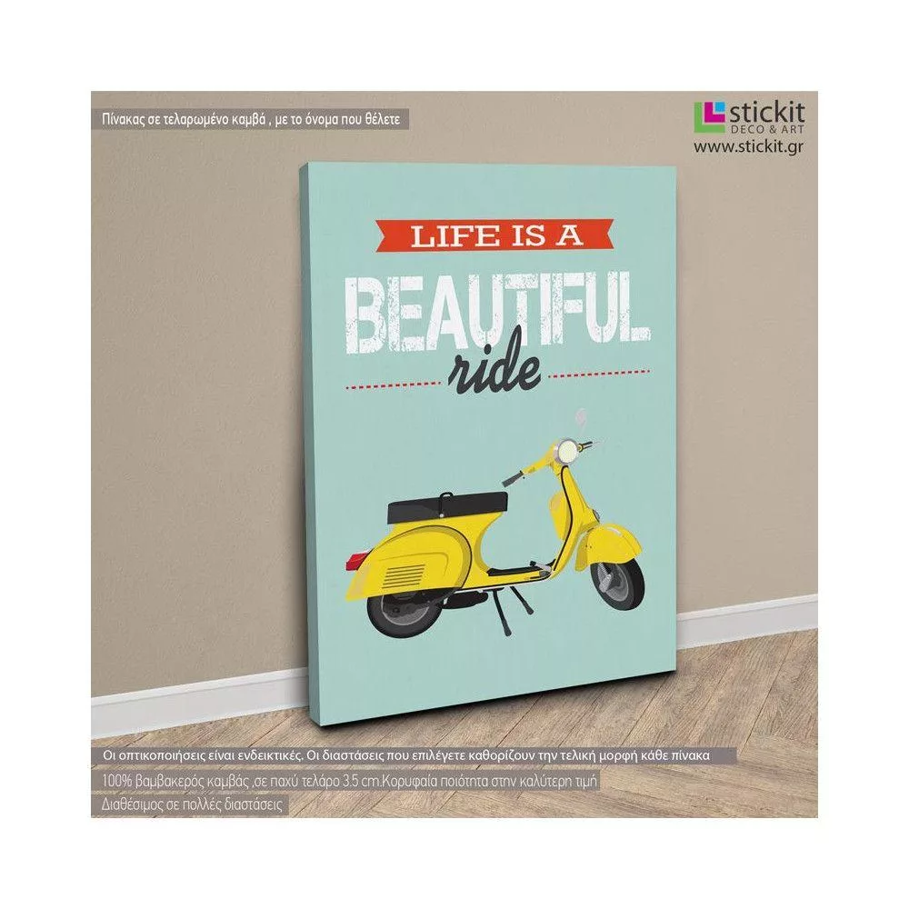 Πίνακας σε καμβά Life is a beautiful ride (yellow)