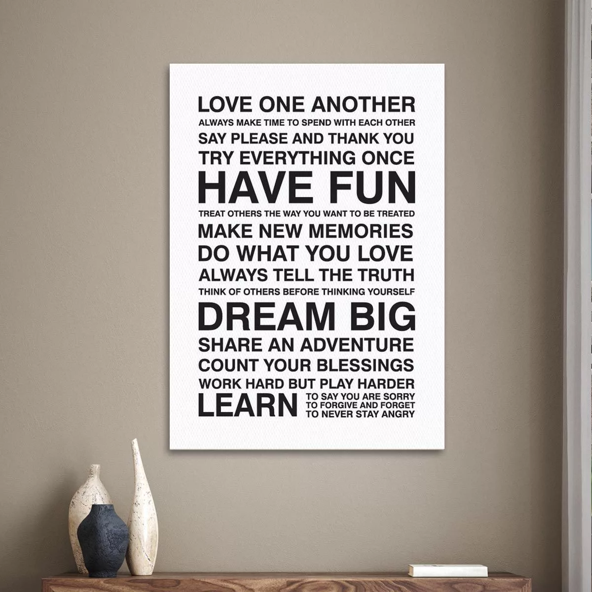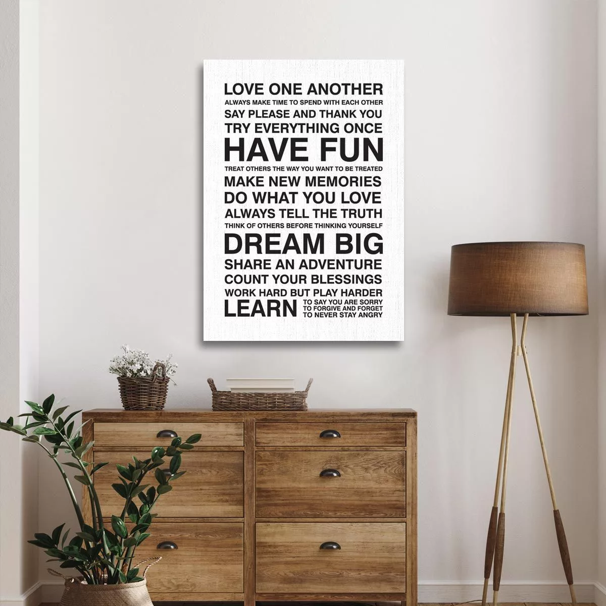 Πίνακας σε καμβά Love one another, house rules Άσπρο Μαύρο