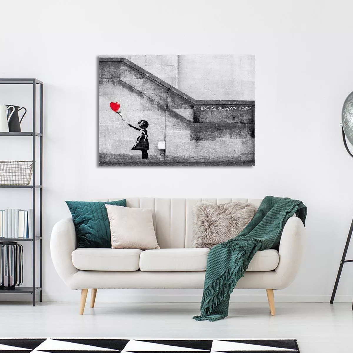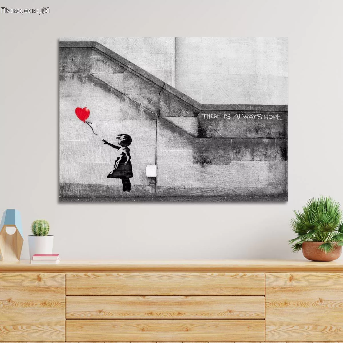 Αυτό το έργο του Banksy, "There's always hope", μεταμορφώνει την ατμόσφαιρα του χώρου, προσδίδοντας ένα ισχυρό μήνυμα ελπίδας και σύγχρονης αισθητικής. Δεν είναι απλά ένας πίνακας· είναι μια δήλωση που εμπνέει, δημιουργώντας ένα σημείο αναφοράς στην διακόσμηση σας. Το εμβληματικό «Κορίτσι με Μπαλόνι» (Girl with Balloon), αρχικά γκράφιτι στο Ανατολικό Λονδίνο το 2002, απέκτησε αργότερα τη φράση «There's always hope», ενισχύοντας το βαθύ συναισθηματικό του αποτύπωμα ως σύμβολο διαρκούς αισιοδοξίας.