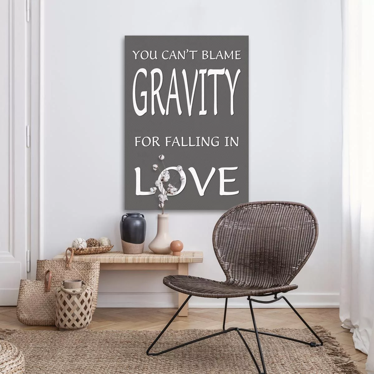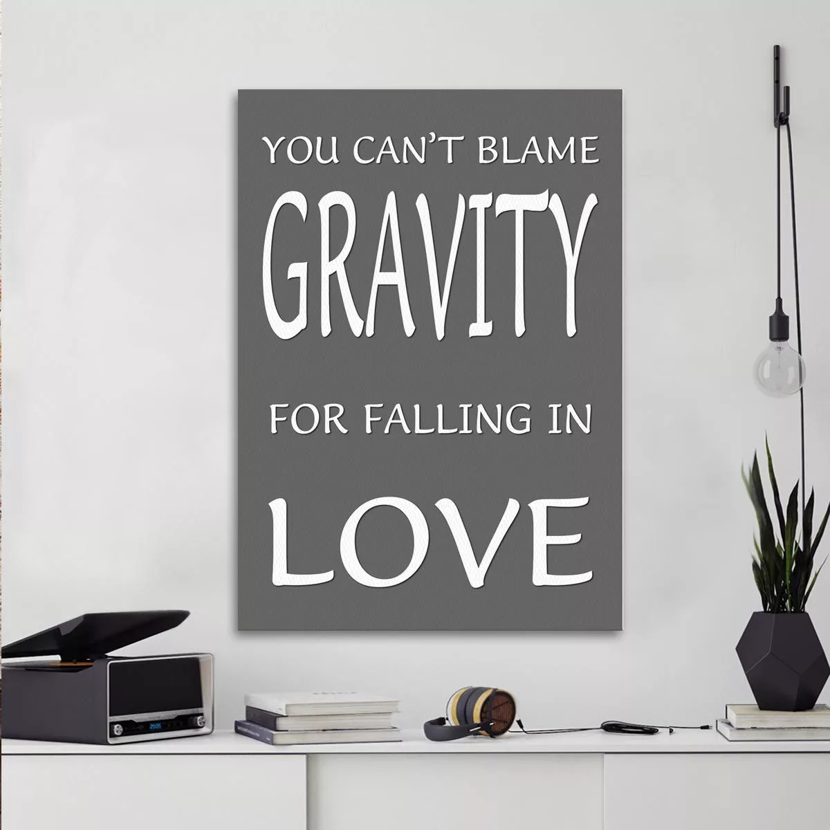 Πίνακας σε καμβά You can't blame gravity for falling in love Γκρι ροζ