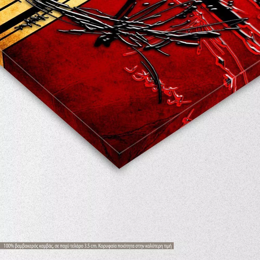 Πίνακας σε καμβά αφηρημένος, γεωμετρικός , Abstract oil painting, cut red