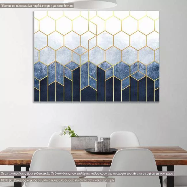 Πίνακας σε καμβά Geometric hexagons blue