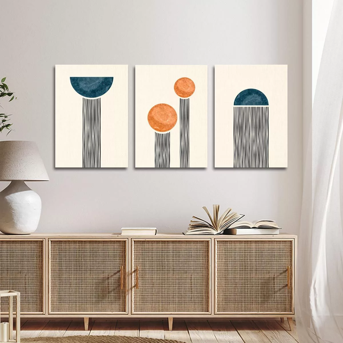 Πίνακας σε καμβά Raining lines, τρίπτυχος