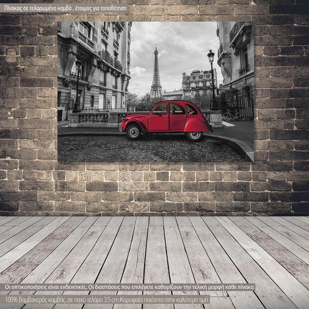 Πίνακας σε καμβά Παρίσι, Eiffel tower with 2CV multicolor