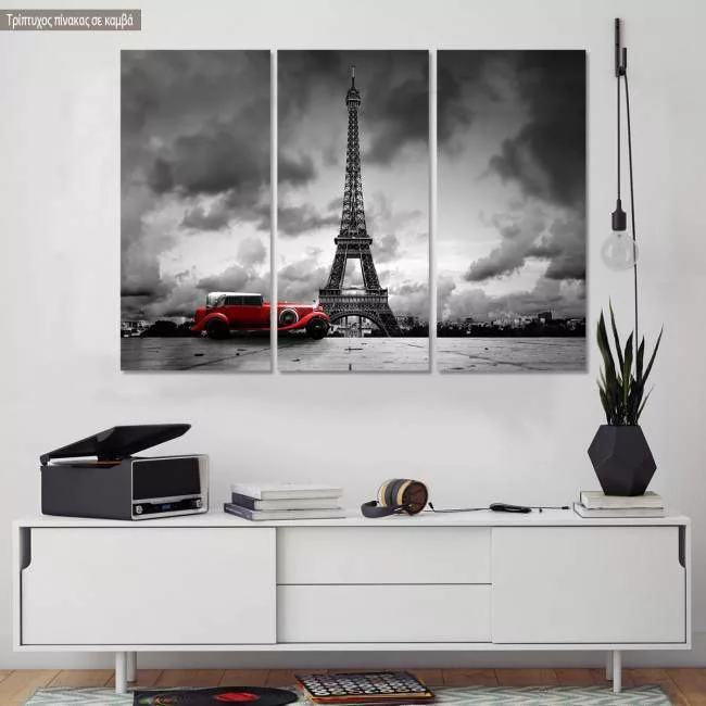 Πίνακας σε καμβά Retro car @ Eiffel, τρίπτυχος