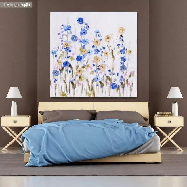 Πίνακας σε καμβά Blue and yellow flowers I τετράγωνος