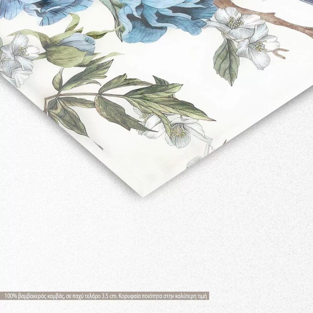 Πίνακας σε καμβά Flowers and blue sparrow I