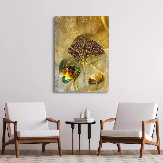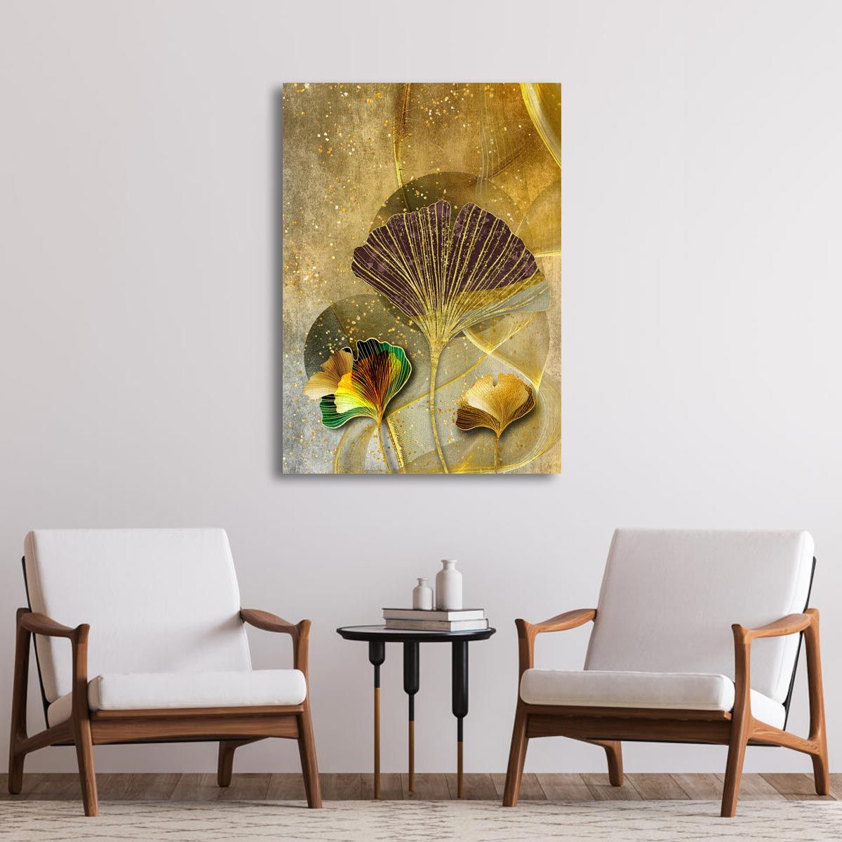 Πίνακας ζωγραφικής Golden lines and feathers I