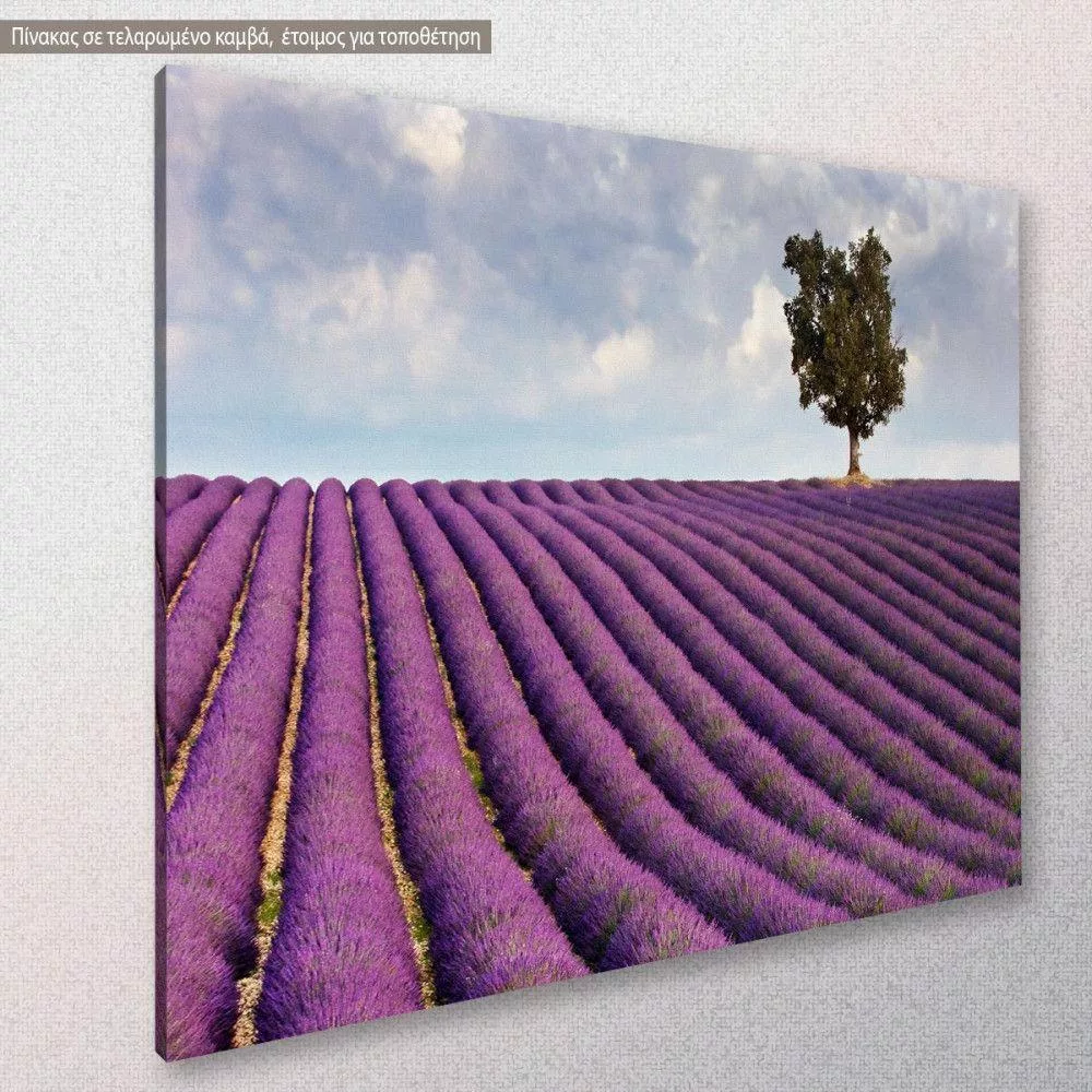 Πίνακας σε καμβά Λεβάντες, Lavender field and a lone tree