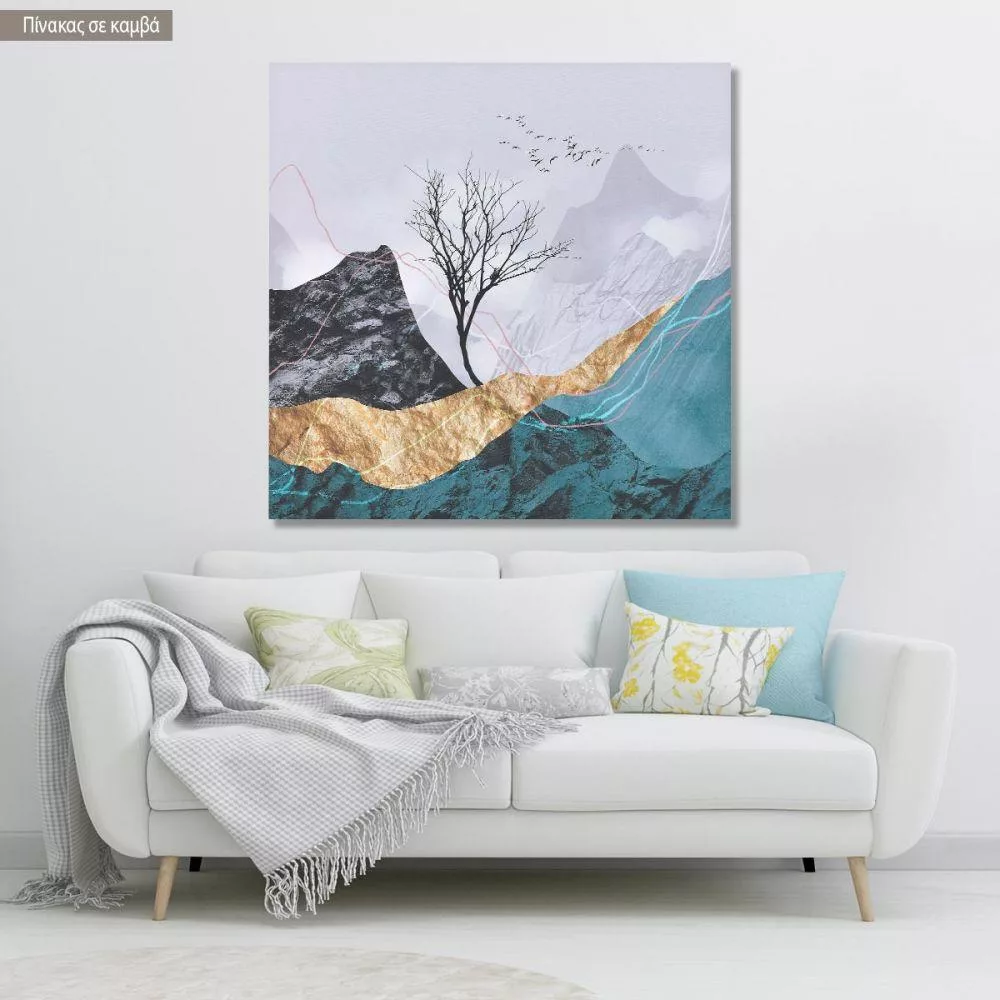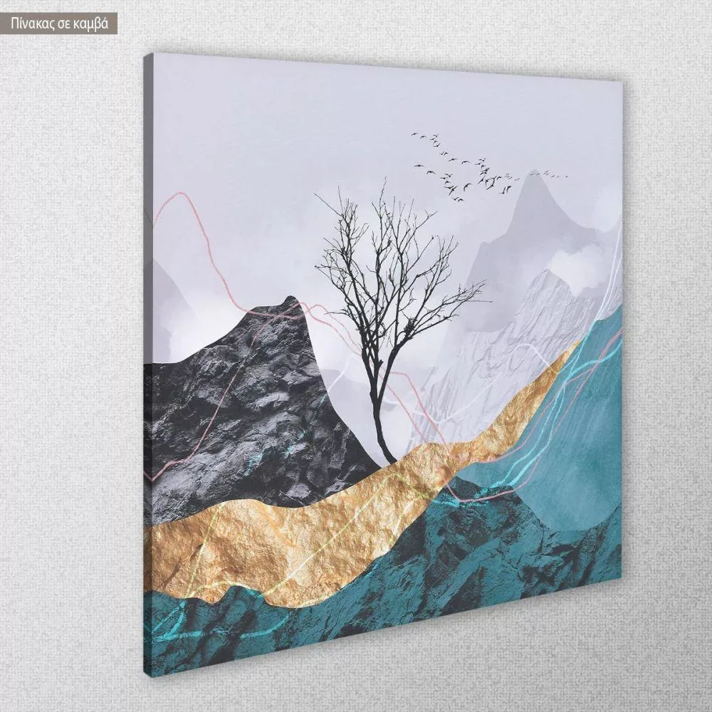 Πίνακας σε καμβά, Lone tree with flying birds I, τετράγωνος