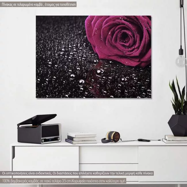 Πίνακας σε καμβά Μωβ τριαντάφυλλο, Mauve Rose with water drops