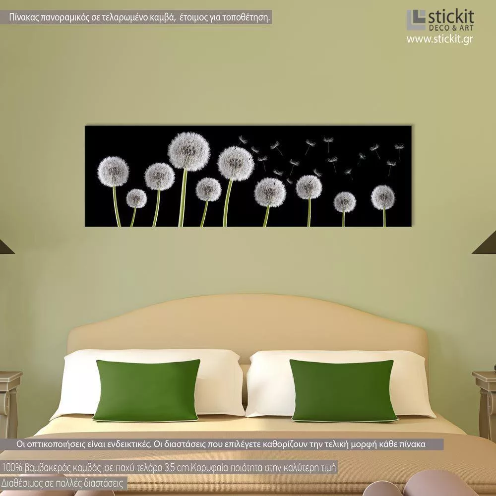 Πίνακας σε καμβά Dandelions black & white, πανοραμικός