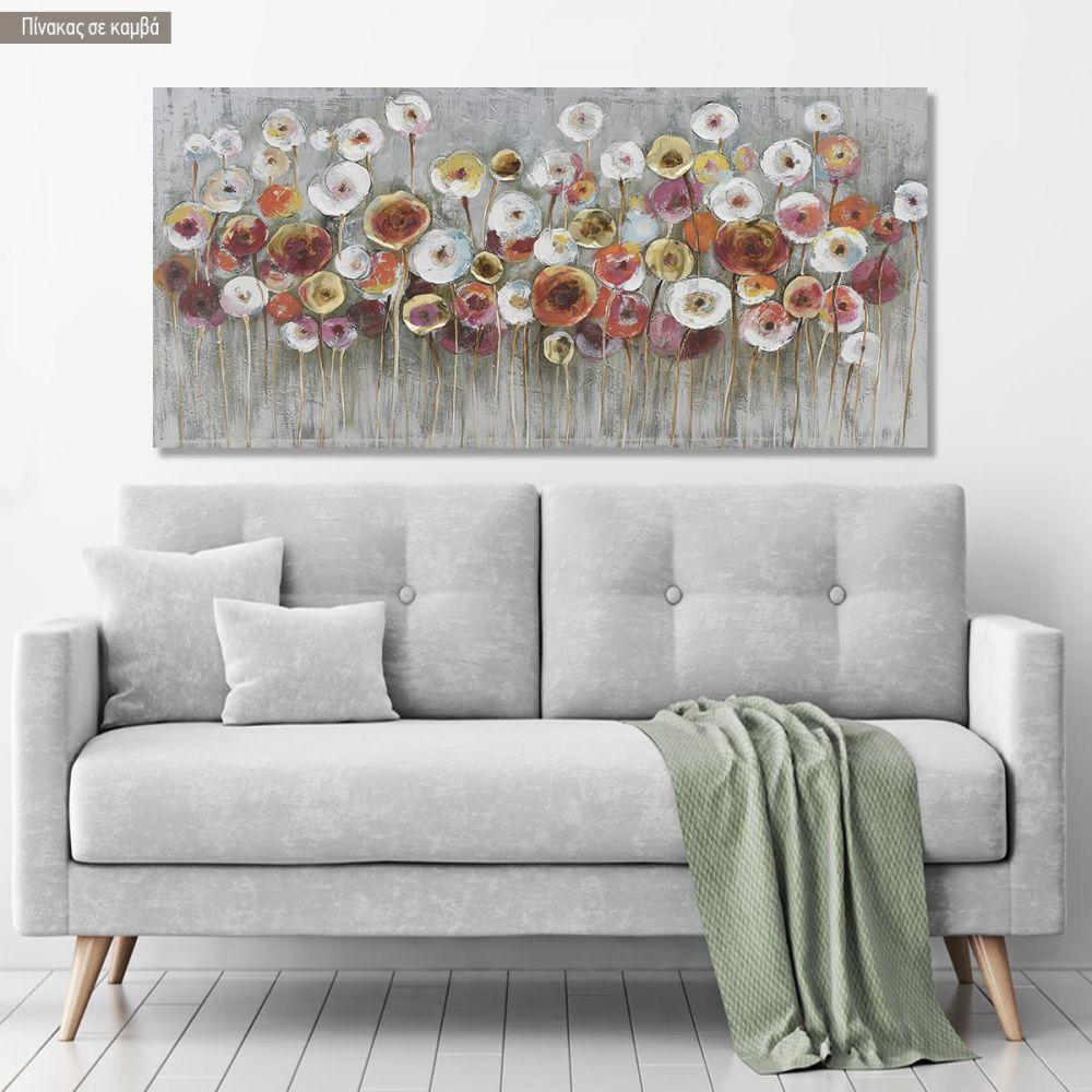 Πίνακας σε καμβά Flowers in many colours, πανοραμικός