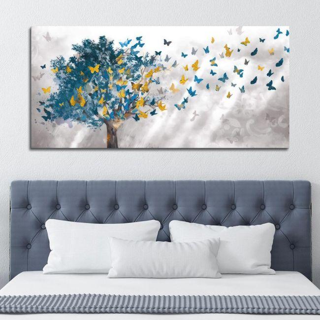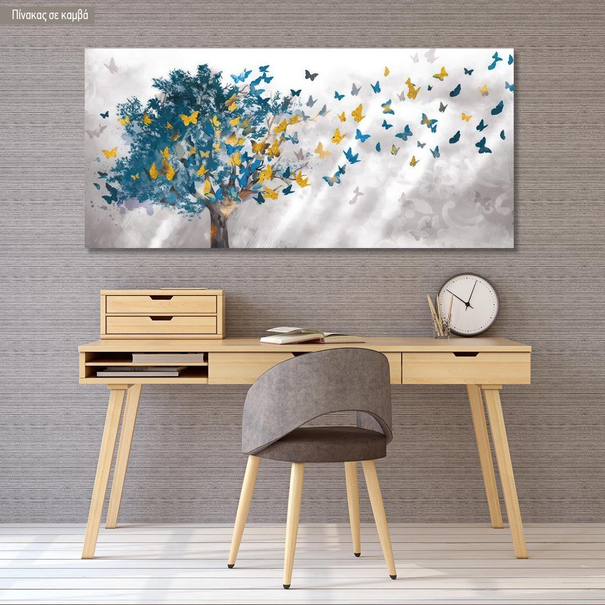 Πίνακας σε καμβά Tree and butterflies, πανοραμικός